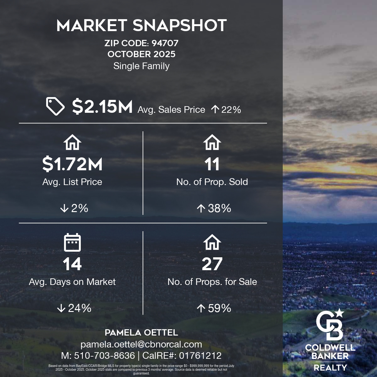 The 94707 zip code in Berkeley/Kensington continues to show strong performance in October 2025! Here’s what the numbers tell us: